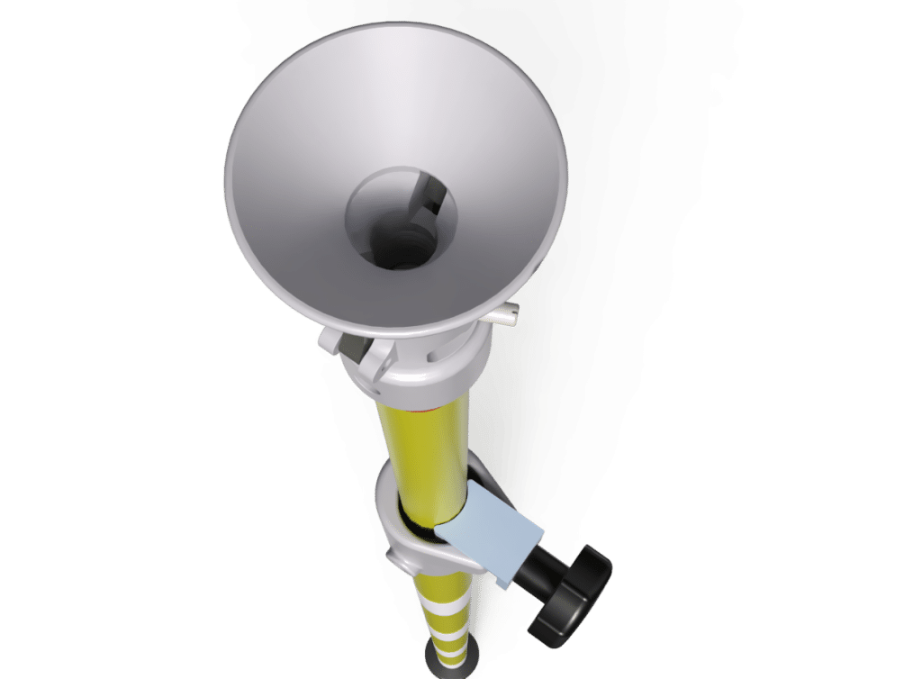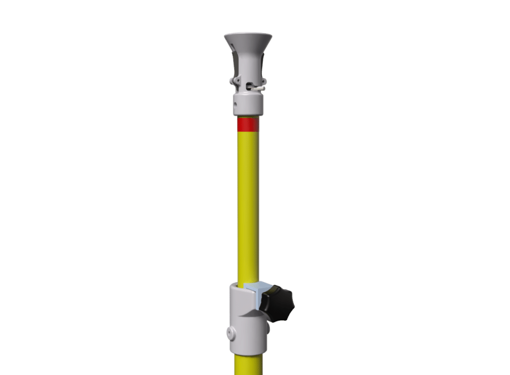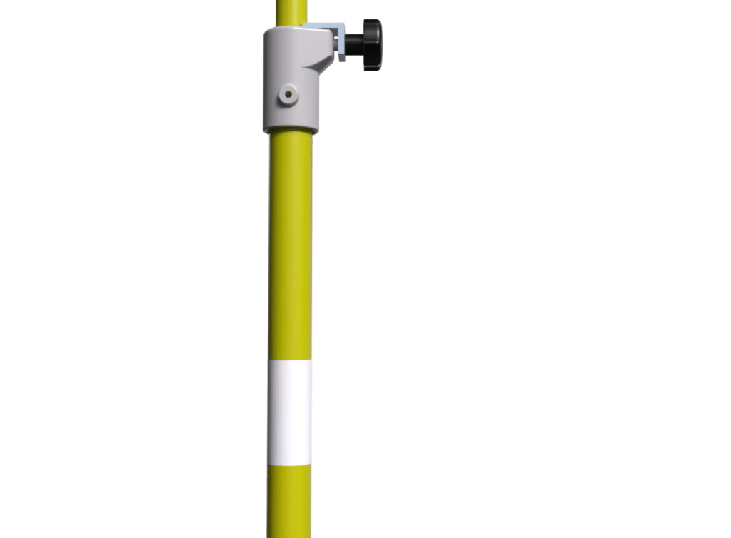Earthing Poles for railway systems are used for connecting railway earthing devices. To do this, the earthing terminals are bought up to the contact wire. These earthing poles are marked with red stripes on a white background. This allows optimum identification of the work site.